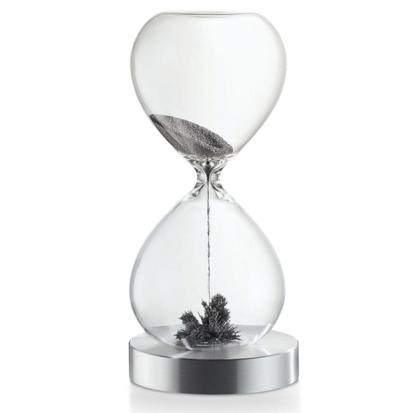 The Lala 103004 Magnetic Hourglass does exactly what its name promises! This magnetic hourglass lets a moment of time pass quietly inside your soul and at the same time, the thoughts outside remain still. Charm and simplicity abound with this magic, as the magnet in the base lets the ferrite re-form itself into a new shape, over and over again, acting as an alternating work of art. Make time flow beautifully in a space with refined aesthetics! The beautiful hourglass is made of borosilicate glass, with an aluminum base and bears the signature of the famous Philippi house!