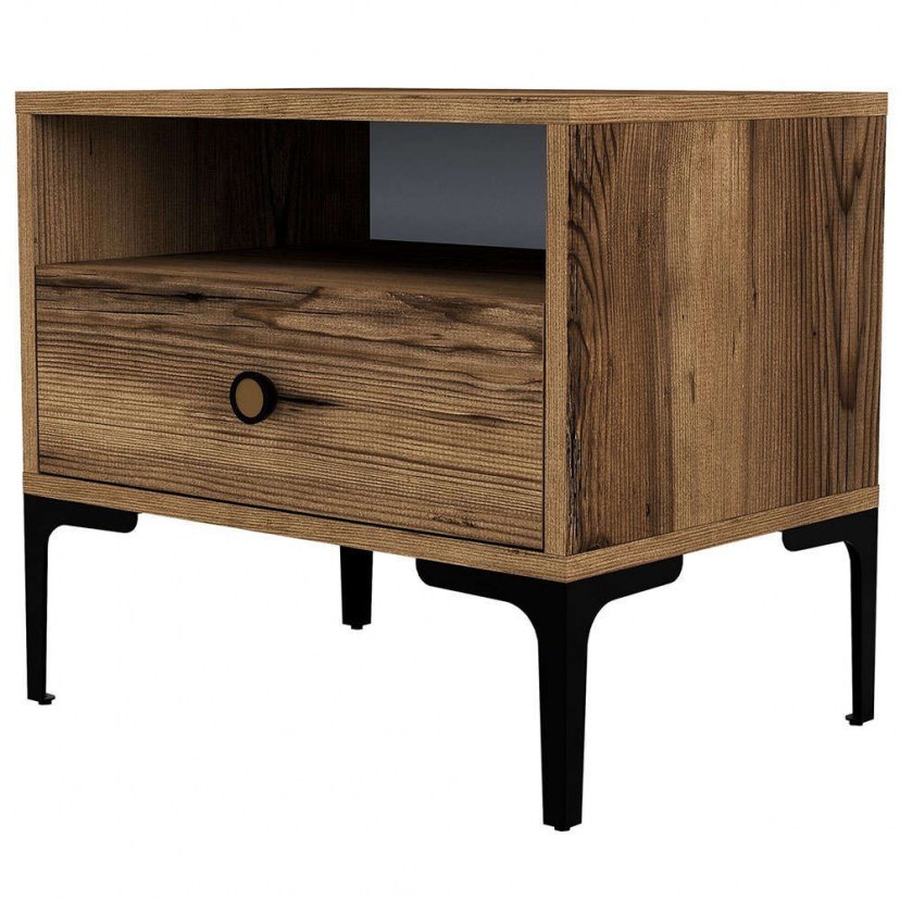 Introducing the modern and stylish Lizbon 845HCT2501 Nightstand, the perfect addition to your bedroom, combining functionality and aesthetics. The modern and innovative design of the bedside table will transform your bedroom into a stylish and contemporary oasis. The colors add elegance, while the plastic handle and metal legs enhance its modern look with a more industrial aura. It is made of chipboard with a melamine coating, so it is resistant to scratches and stains, ensuring longevity and durability. The practical shelf and spacious drawer ensure convenience and organization. Redefine your space with the refined design and practicality of the Lizbon bedside table, making your bedroom more stylish and functional than ever. The product is delivered unassembled.