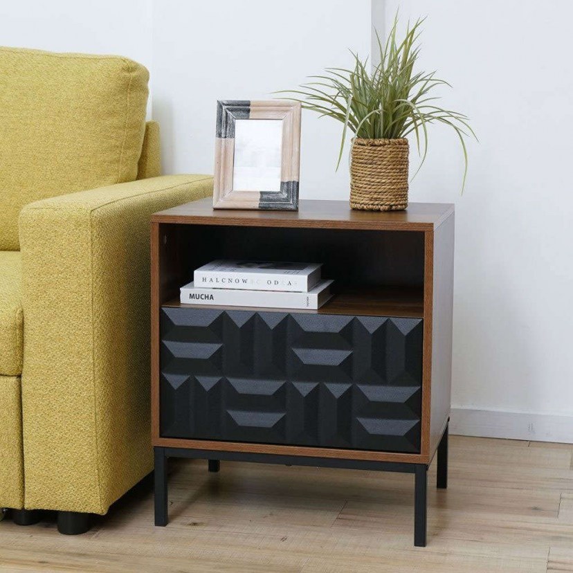 The Zuma 09-2005 bedside table is a modern piece of furniture that will elevate the decoration of modern bedrooms. It has a shelf and a drawer to store your items. It is made of sturdy metal and melamine. The product is delivered unassembled, in factory packaging with a detailed assembly guide.