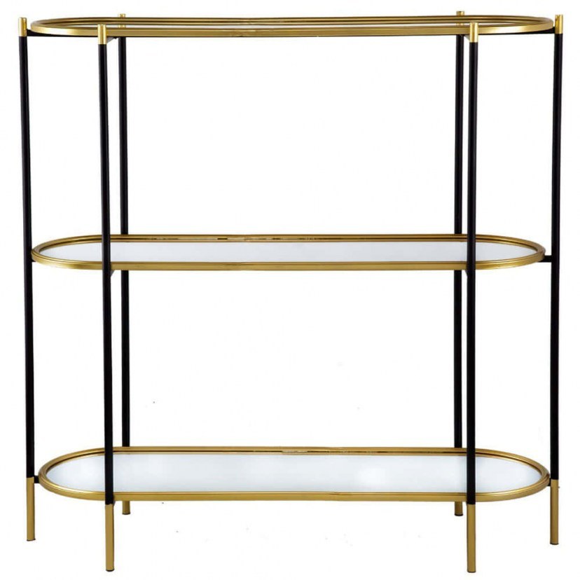 Showcase your space with the Irregular 82960-DS-SA Console, a unique combination of metal and glass - mirror for extra style and light. Its beautiful design will add luxury. It has three functional shelves, offering elegance and practicality.