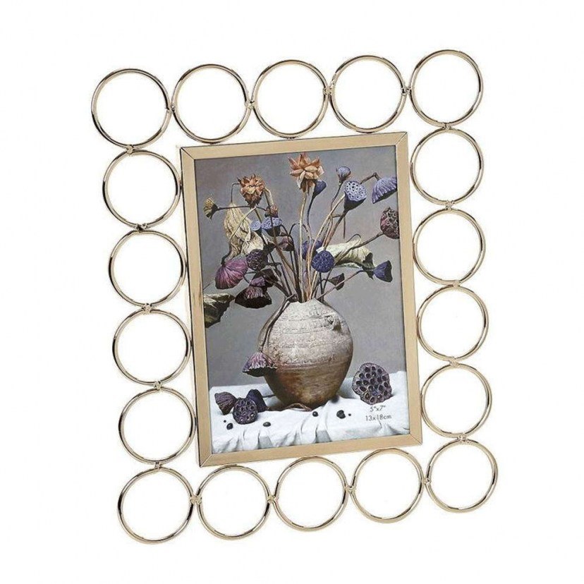 The FAM205 Frame is modern yet timeless, making it ideal for any contemporary space. It is a unique frame with a special frame made of metallic, golden rings. It can hold a 13x18 cm photo. Make it yours with a simple click! Quality: - Metal & Glass Dimensions: - 1 Frame: Length: 22 cm, Width: 1.5 cm, Height: 27 cm