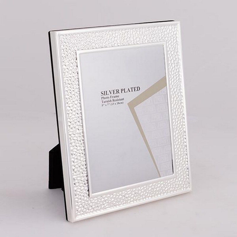 Frame 756-10045 is the ideal choice for those looking for a combination of elegance and sophisticated style. Crafted from silver-plated metal, this frame features an embossed design reminiscent of hammering, lending a sense of handcrafted artistry and unique texture. The embossed design adds depth and character, while the silver-plated finish enhances the sense of luxury and sophistication. It is suitable for a 13x18 cm photo.