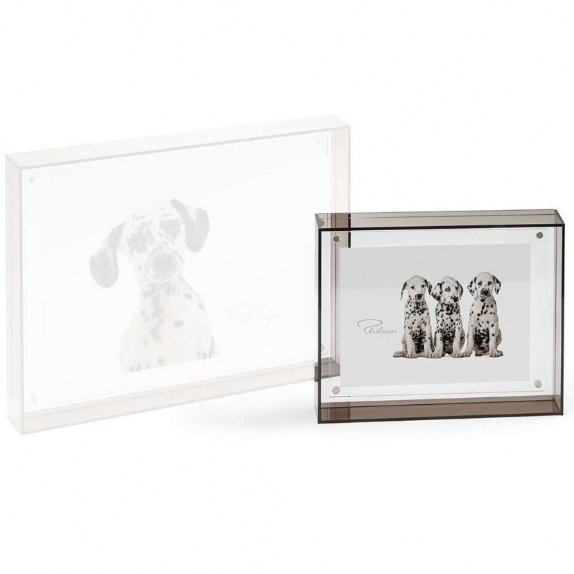 The Puenktchen Picture Frame 117012 is an impressive decorative object that combines practicality and modern design. Made from clear gray acrylic with a smoked glass look, it provides an elegant and subtle balance to the image surface, allowing the beauty of the photograph or artwork to shine through. Its design is quite wide, avoiding the need for additional support at the back. The 90° angle of the frame gives a youthful and architectural look, while offering the possibility of hanging. Images are held in place by four discreet magnets, allowing photos or collages to be easily changed in seconds.