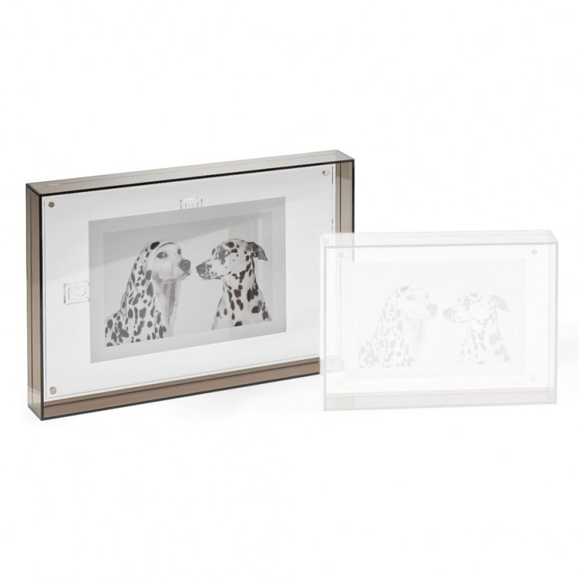 Discover the unique Puenktchen Frame L 117013 – the ideal choice to display your favorite photos with style and elegance! The transparency of the acrylic material creates the impression that the images are "floating", while the invisible effects created when the frames are overlapped or placed in front of a background such as wooden or brick walls provide a modern, artistic feel. The clear acrylic frame with a smoked glass look offers a modern and youthful architectural look, while its wide design allows for easy placement without the need for additional support at the back. The 90° angle of the frame further emphasizes its sophisticated appearance. The innovative system with 4 discreet magnets allows easy changing of images or collages in seconds, while hanging on the wall is simple and comfortable. Without brackets and fasteners, this picture frame combines practicality and aesthetics, making it the most functional and stylish choice for your home or office! Accepts one photo with dimensions of 15x20 cm.