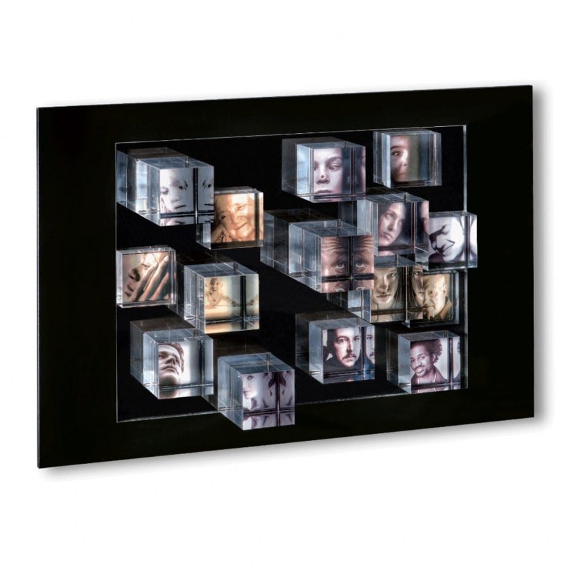 Discover the impressive Rocky Mountain Wall Frame 260013, an innovative and luxurious solution for displaying your favorite images. This frame elevates 15 crystal acrylic glass cubes, creating a stunning "floating" effect for your photos. The unique design allows images to be stuck behind the cubes, while being held firmly in place by the black magnet on the back, offering a sense of elegance and modern technology. It's not just a picture frame – it's a work of art that was awarded the FORM# Design Award in 2009, recognizing its innovation and outstanding aesthetics. Accepts 15 photos with dimensions of 3.5x3.5 cm.