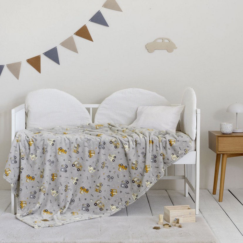 The Dino Baby Blanket was designed to give your baby a comfortable, warm and peaceful sleep. It has a printed design with cars driven by dinosaurs. It is made of 100% polyester flannel fabric, which makes it light, warm, pleasant to the texture and ideal for cold nights. It shows great resistance to chronic use.