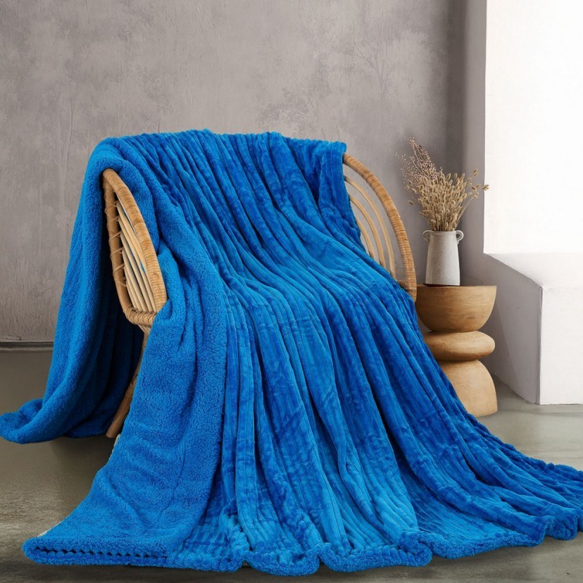 Blanket Jollein With Sherpa Blue Rythmos