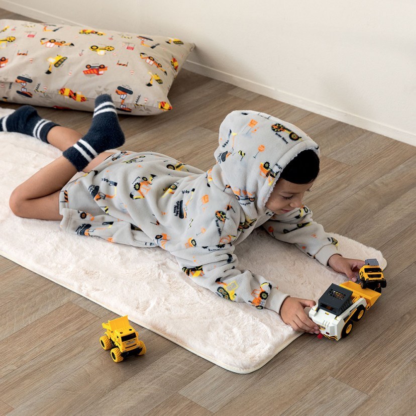 The Lorry Children's Blanket With Sleeves will become your child's favorite, as it will provide warmth every moment in the house. It brings children's shows with vehicles. It has sleeves and a hood. It has a quality composition of flannel fleece and sherpa, which gives durability and a pleasant feeling. Washable at 30°C. Tumble dry on low heat is allowed. Do not iron, dry clean and use strong bleach or chlorine.