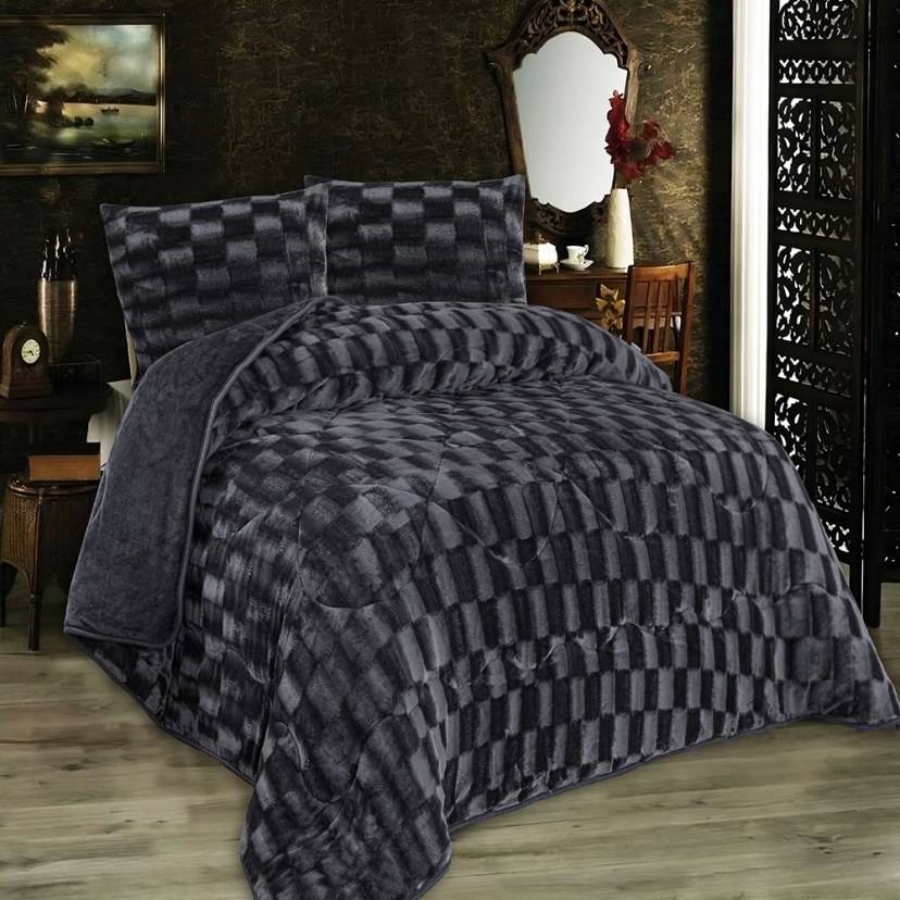 Blanket-Duvet 1940 With Fleece Effect Grey-Black DimCol