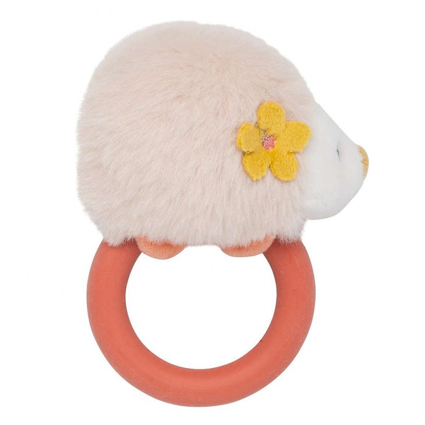 The Zoe Hedgehog Rattle with Silicone Chew N266178 is a multi-purpose toy that provides double fun and teething pain relief for your baby. With its soft silicone teething ring and hedgehog rattle, this toy is perfect for your baby's first few months. The silicone teething ring provides relief from teething pain, while the stuffed animal and rattle provide fun and activity. It is easy to hold in baby's small hands thanks to its size and weight.