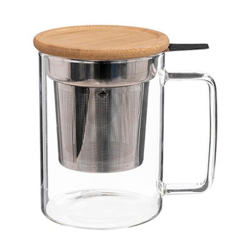 The Mug With Filter & Cap 07.188843 is an ideal choice to easily and quickly make your favorite drink. This is a 450ml glass mug that comes with a filter, allowing you to place your tea or other herbs and make your brew with ease. The wooden base of the lid is not only practical to protect the contents, but can also be used as a coaster, thus keeping your drink warm for longer.