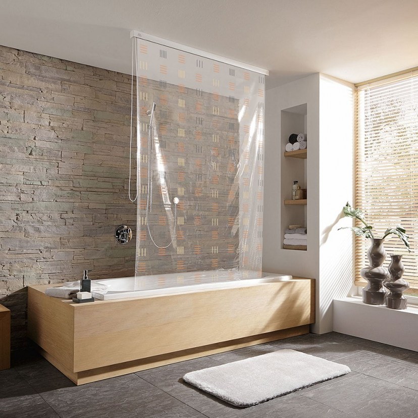 The D-Rollo für Leerk 3321 Shower Curtain - Roller is transparent and features beautiful linear designs. It is very practical as it is easily placed on the special rod and has a magnetic safety feature. It is made of vinyl, which makes it durable over time and use. Get the installation frame (3870497) now and get rid of permanently hanging curtains, making your bathroom more functional. Quality: 100% Vinyl. Dimensions: 1 Curtain: Length: 128 cm, Height: 240 cm.