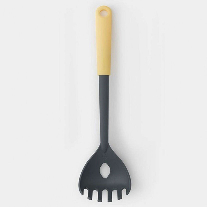 The Spaghetti Pasta Spoon Tasty 081.1227/05 has an ergonomic design that will make mixing and serving your pasta a breeze. It is resistant to temperatures up to 220°C. You can also use it as a measuring cup for a portion of 75 gr. It is suitable for non-stick cookware, and you can also wash it in the dishwasher. A five-year warranty is offered. Quality: