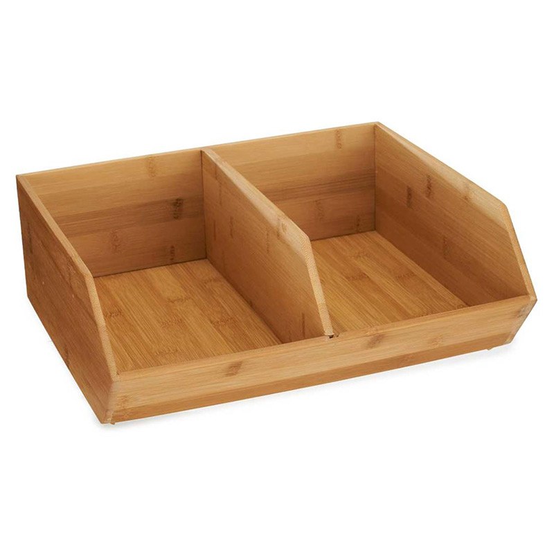 The Double Cutlery Holder 029.62618 offers organized storage for cutlery and kitchen accessories. Made of quality bamboo wood, it combines durability and elegance, providing two separate compartments for better organization.