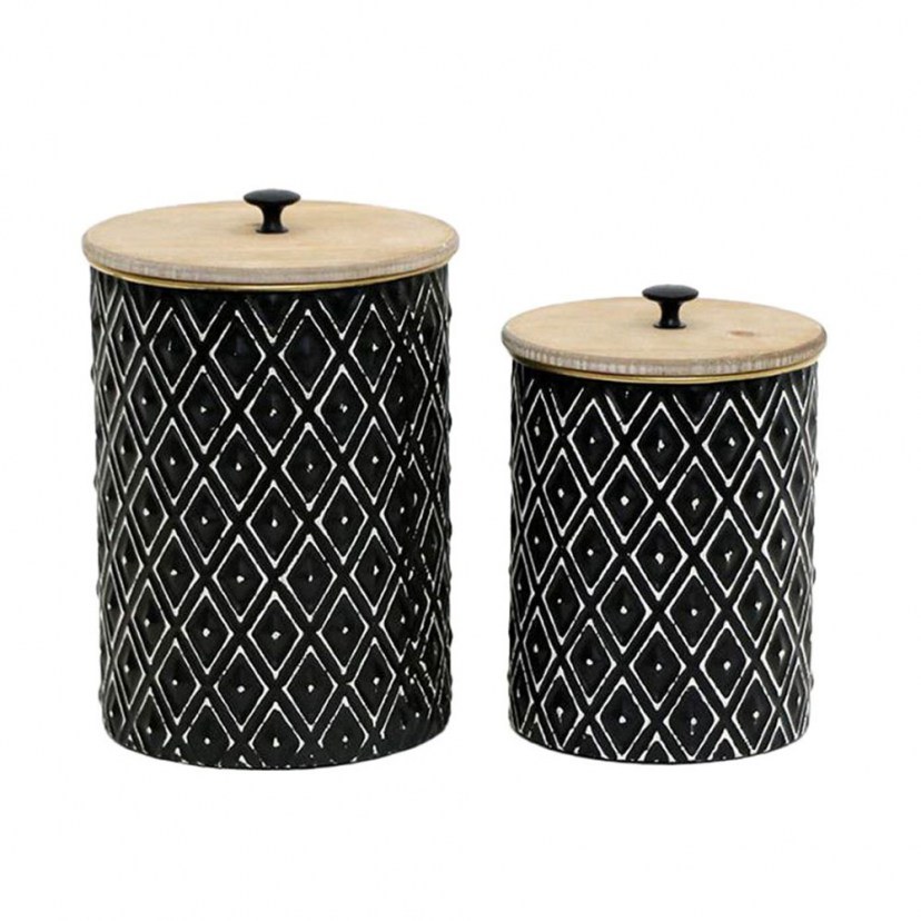 The Decorative Storage Box Set (2Pcs) Cruse 023451 is a wonderful choice for those of you who want to add ethnic elements to the decoration of your space. It is made of quality metal with embossed designs and has wooden lids. The set consists of two boxes of different dimensions.