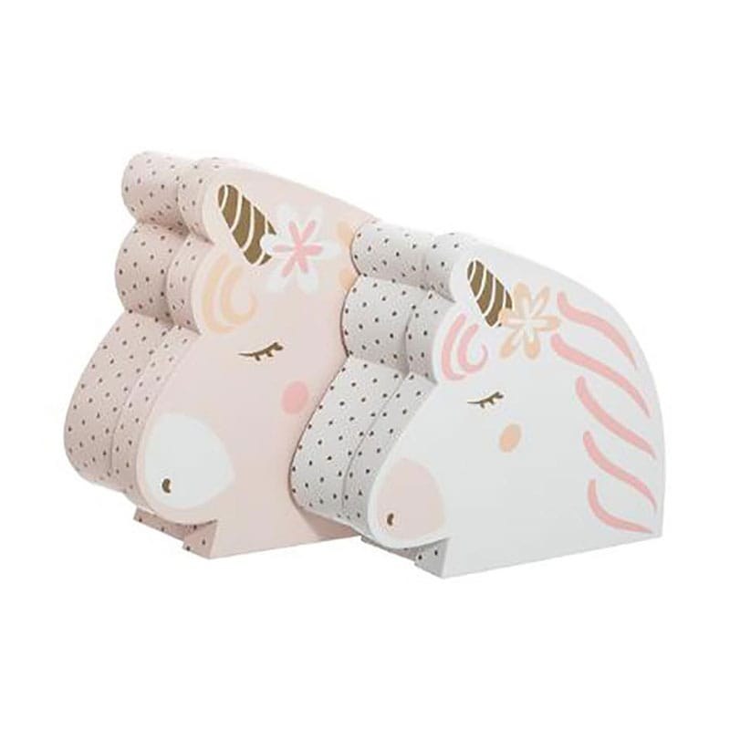 Your little princess deserves the best, that's why designdrops offers you a wonderful collection of children's bedspreads and decorations to make the children's room fairy-tale! The Children's Storage Box Set Unicorn 07.174043 is an excellent choice, thanks to its beautiful design and pastel colors! It consists of two cardboard boxes in the shape of a unicorn, which will help you keep your child's personal items organized! Quality: Paper. Dimensions: 1 Set: 1 Box: 20x17.5 cm & 1 Box: 22.7x20.4 cm.