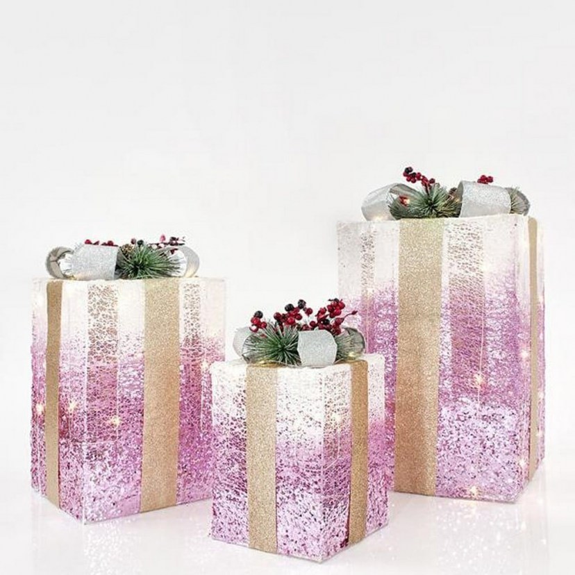 The Gift Box Set With Led Lighting (3Pcs) 600-31025 is ideal for those of you who want to elevate the festive design of your space. It has a quality fabric composition and is characterized by a beautiful design that will elicit only positive comments from your guests. It has built-in LED lighting in warm white color. Operates on three AA batteries, which are not included. The set includes three boxes of different dimensions. It is suitable for indoor use.