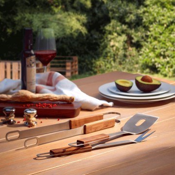 At designdrops you will find complete Barbeque Tool Sets, so that you always have the right tool for every barbeque near you and easily accessible. These are complete sets, which include forks, spatulas, tongs, cleaning brushes, corkscrews, brushes and everything you need to grill and serve meat, vegetables, burgers, skewers and fish as well as to clean the grill, grease the grill, to open the bottles of drinks, etc. Everything you need for an even more enjoyable barbeque you will find in the rich collection of Barbeques & Grills of designdrops!