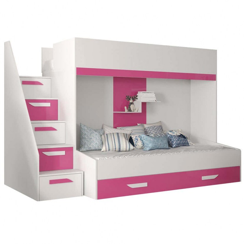 Bunk Bed Party XVI (For Mattresses 90x200/90x195cm) 162600469 247x135x165cm White-Pink