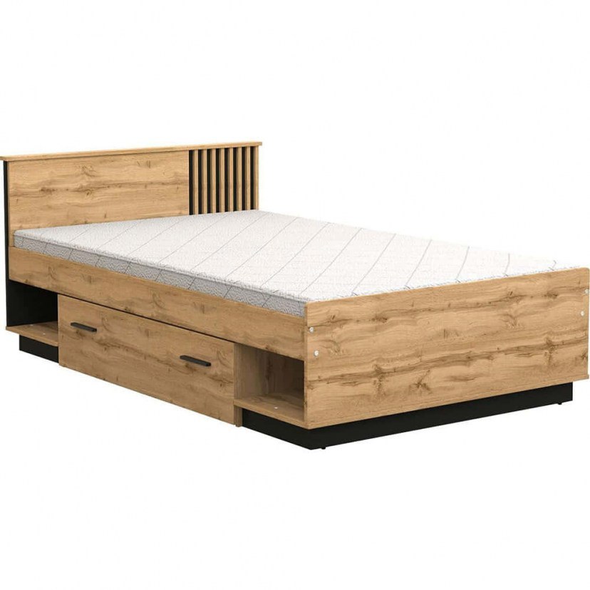 Bed With Storage Space Lamelo I (For Mattress 120x200cm) 162745189 125x207x79cm Natural-Black