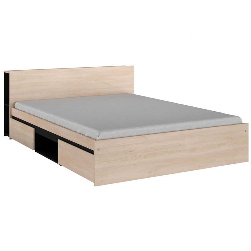 Bed With Storage Space Logan (For Mattress 140x190cm) 162447159 147,8x212x70cm Natural-Black