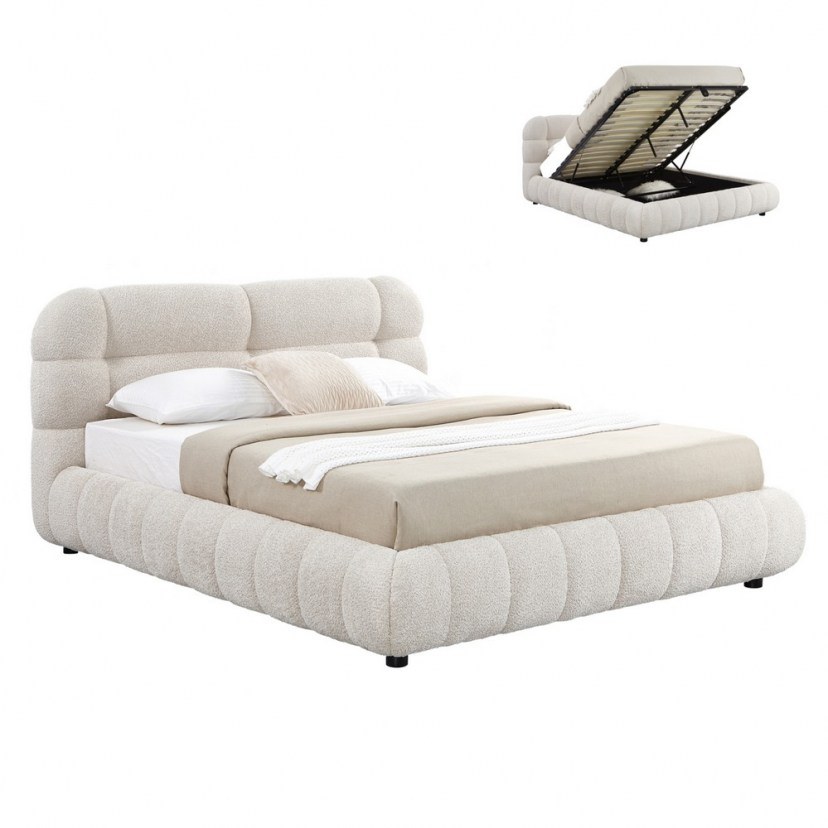 Το Κρεβάτι Molen HM730.03 συνδυάζει κομψότητα και πρακτικότητα. Η «ζεστή» επένδυση με μπουκλέ ύφασμα και καπιτονέ τεχνοτροπία χαρίζει στιλ και άνεση, ενώ οι δύο σειρές ανατομικών τάβλων υποστηρίζουν ιδανικά το στρώμα. Το κρεβάτι διαθέτει μεγάλο αποθηκευτικό χώρο κάτω από το στρώμα, προσβάσιμο μέσω μεταλλικού τελάρου με αμορτισέρ, που κρατάει το τελάρο ανασηκωμένο με ασφάλεια. Με στιβαρή κατασκευή και χαμηλά πόδια από ενισχυμένο πολυαιθυλένιο, αποτελεί ιδανική λύση τόσο για το σπίτι σας όσο και για ξενοδοχεία ή Airbnb. Είναι κατάλληλο για στρώμα 160x200 cm, το οποίο δεν περιλαμβάνεται.