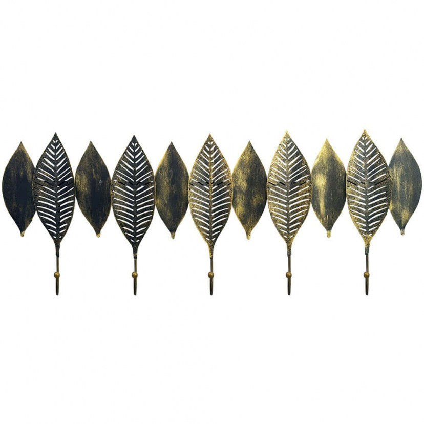 The Dilber 5-Position Wall Hanger features an elegant leaf design with an antique finish, offering a vintage and elegant feel to your space. Made of durable metal, it is hand-painted, highlighting the unique details and quality of its construction. Its five hooks are ideal for organizing your personal belongings, while its sophisticated design and durability make it a great and long-lasting addition to your home.