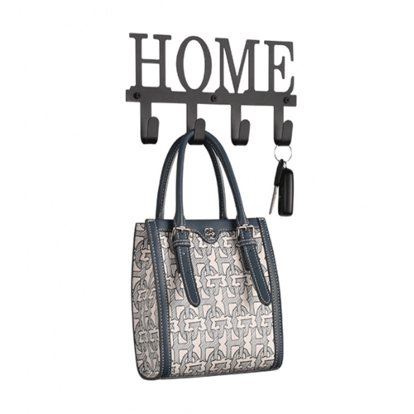 The Nicole Wall Hanger 2410102 has a minimal and elegant design, which will easily fit into any home. It is made of metal, which makes it sturdy and wear-resistant. It is labeled "HOME" and has four hooks for hanging items. Quality:
