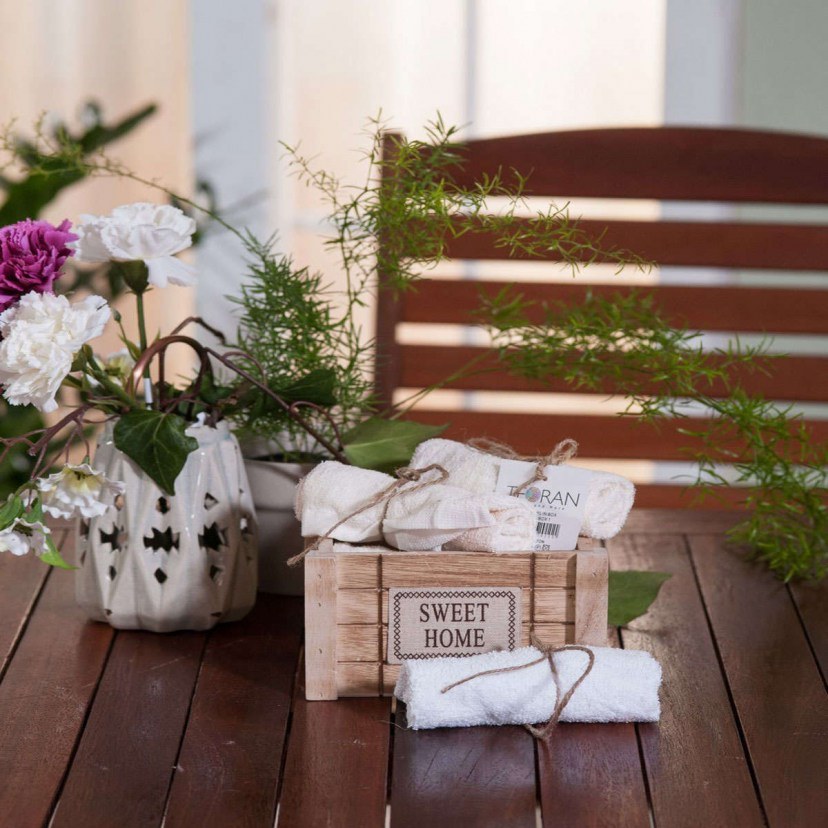 Elegance, frugality and usability are just some of the virtues that characterize Box1009 washer sets. They are made of cotton fabric to ensure softness, absorbency and hygiene. The set includes five washcloths that are stored in a wooden box, taking off the design of your bathroom. They are washable at 30 degrees at low spins and are easy to iron.