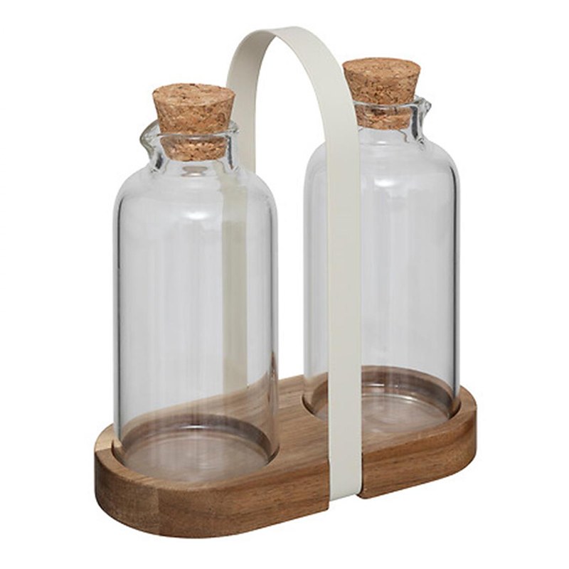 The Oil Vinegar Set 07.203015 is the ideal solution to add elegance and functionality to your table. The set includes two glass containers for oil and vinegar, with an ergonomic design that ensures a smooth flow for easy and precise use. The elegant wooden base with the ergonomic metal handle offers excellent stability and style, making it ideal for your table or kitchen.