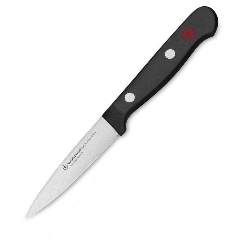 ΤοΜαχαίρι Γενικής Χρήσης Gourmet 1035048108 είναι μικρό και ευέλικτο, χάρη στη λεπτή λεπίδα με τη μυτερή άκρη, που το καθιστά ιδανικό για όλες τις χρήσεις και κοπές, π.χ. για ξεφλούδισμα, καθάρισμα και τεμαχισμό φρούτων, λαχανικών, για καθαρισμό και κοπές κρεάτων και πουλερικών κ.α. Αυτό το εκπληκτικό μαχαίρι διακρίνεται για την υψηλής ποιότητας λάμα από μονοκόμματο κομμάτι χειρουργικού ατσαλιού που περιέχει χρώμιο-μόλυβδο-βανάδιο (X50 Cr MoV 15), γεγονός που το καθιστά ανθεκτικό και κοφτερό. Διαθέτει εργονομική λαβή με τρία πριτσίνια.