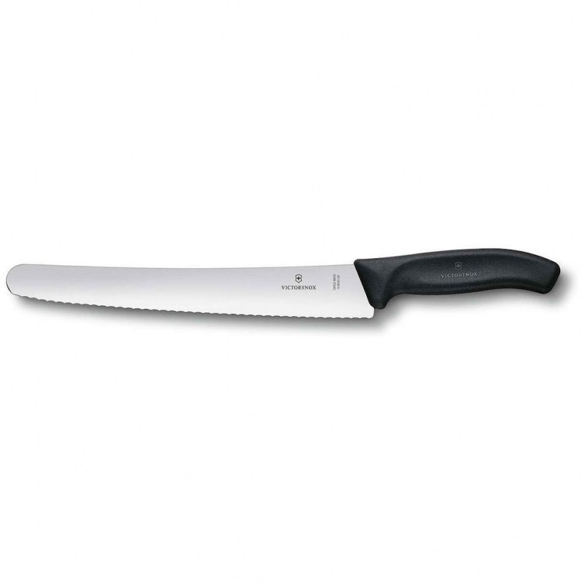 Το Οδοντωτό Μαχαίρι Ψωμιού - Ζαχαροπλαστικης Swiss Classic 6.8633.26B διαθέτει αιχμηρή, οδοντωτή λεπίδα από ανοξείδωτο ατσάλι, που γλιστράει εύκολα σε ψωμιά και γλυκίσματα, προσφέροντας καθαρά και ακριβή κοψίματα κάθε φορά. Η ελαφριά, εργονομική λαβή από θερμοπλαστικά ελαστομερή (TPE) εξασφαλίζει άνετο και σταθερό κράτημα, ενώ η ελβετική κατασκευή του και η ασφάλεια στο πλυντήριο πιάτων εγγυώνται αξιοπιστία και αντοχή στο χρόνο.