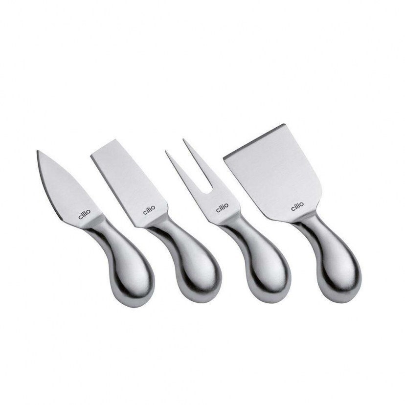 The Piave 294804 Cheese Knife Set includes a Parmesan knife (13cm), a hard cheese knife (14cm), a soft cheese knife (13.5cm), and a cheese fork (14cm), so you have everything you need to accurately cut and comfortably serve your favorite cheeses. They are made of stainless steel, which makes them extremely durable and elegant. Quality: Steel