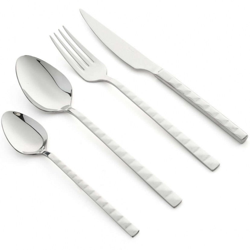 The elegant and timeless design of the Cutlery Set 960DYN1945 will add a touch of luxury to any meal. Crafted from high-quality stainless steel, this 24-piece set is designed to stand the test of time. Its elegant design and durability make it a great investment for any home. Say goodbye to tedious hand washing. It is dishwasher safe, saving you valuable time and effort. The set includes six spoons, six forks, six knives, and six teaspoons.
