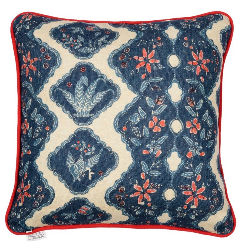 In a magical symmetry of shapes and colors, the Phoenicia Batik Decorative Pillow harmonizes perfectly with the Mediterranean spirit. Noble shades of deep blue and dark red emerge from the beautiful decorative pattern that represents flowers and symbolic motifs found in Aegean culture. This is a high-quality pillow, which features a linen lining and rich filling of duck feathers, ensuring a delightful and fluffy texture. Designed in England. Dry clean only. Washing, bleaching, and tumble drying are prohibited. The product is exclusively imported for you from abroad, so there may be delays in delivery time. Quality: Linen lining, Duck feather filling. Dimensions: 1 Decorative Pillow: 50x50 cm, 1 Decorative Pillow: 30x50 cm.