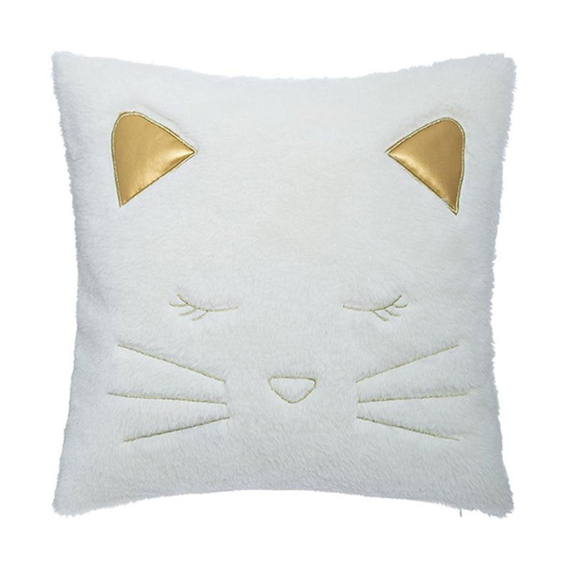 The Children's Decorative Pillow Cat 07.158727A is a smart and economical way to make the children's room beautiful and fairy-tale like! It is a playful pillow, which represents a cute cat with golden details. It is made of synthetic fabric and has rich and fluffy filling, making it durable and comfortable. Quality: Polyester. Dimensions: 1 Pillow: 40x40 cm.