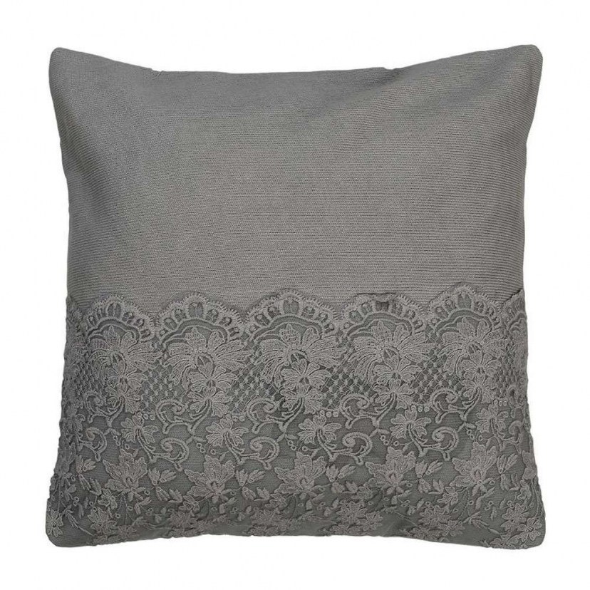The Decorative Pillow ARF213 is available in a modern shade and is decorated with cute lace. It is made of cotton and viscose and has a rich and fluffy filling. It can be washed at 30°C without chlorine. It is not allowed to tumble dry, dry clean, or iron.