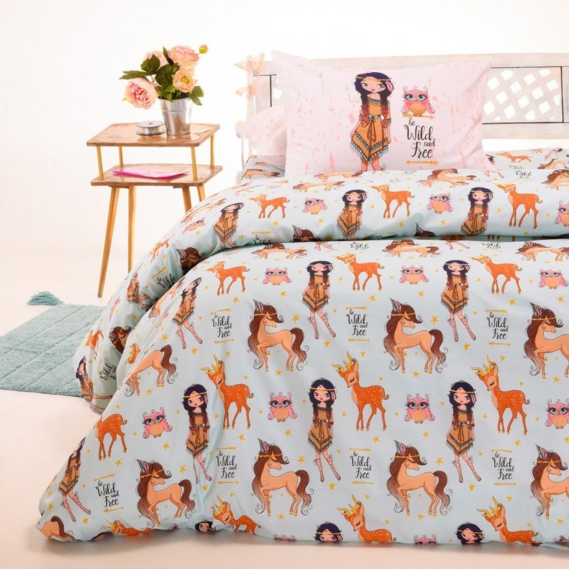 Kid Pillowcases Indian Girl (Set 2pcs) Light Blue Melinen