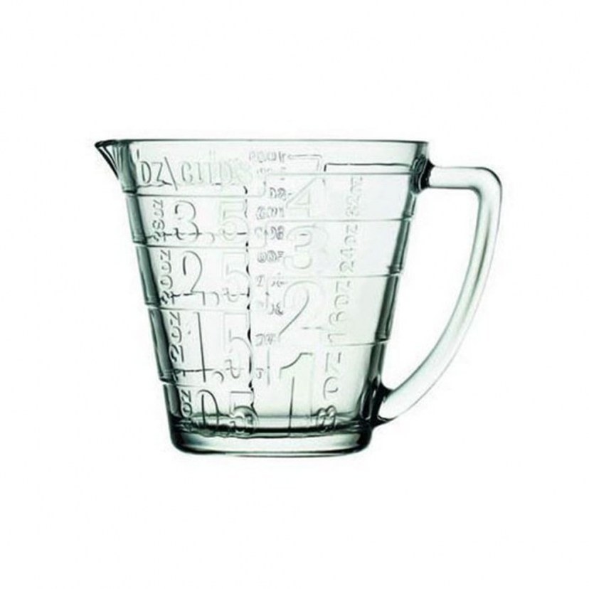 Why should practical objects be boring and mundane? The Basic Cup Sp55172K6 Measuring Cup is here to break the mold, with its modern design and quality construction! It is a unique measuring cup that will be your faithful friend when preparing your favorite desserts, baked goods, meals, etc. It is suitable for the dishwasher and microwave. Thanks to its durable construction, it is also ideal for professional use. Capacity: 1165cc. Quality: Glass. Dimensions: 1 Measuring Cup: Diameter: 18.3 cm, Height: 14 cm.