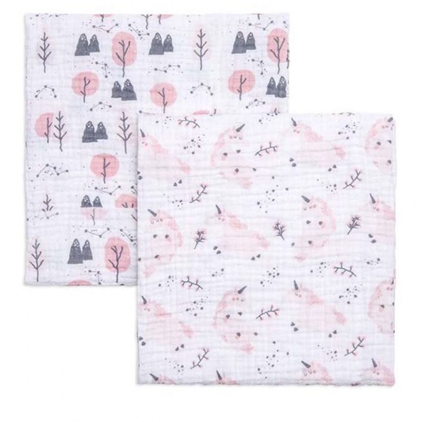 The Unicorn Muslin Set features a playful design, printed with the most beautiful colors. It is a beautiful set that is essential for every newborn baby, as it includes two versatile muslin cloths that will provide comfort to the baby while also freeing the mother's hands. They are made of high-quality cotton fabric, making them extremely soft and gentle on the sensitive baby skin. Quality: