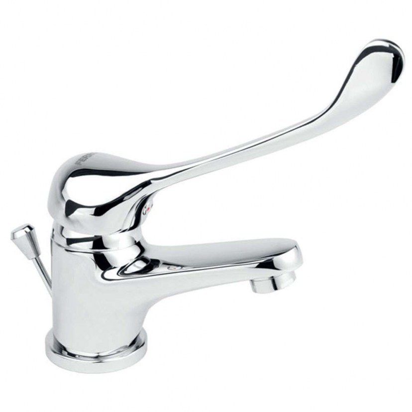 The Vasto Medico BVAM2 Disabled Washbasin Battery features a ceramic mechanism and an ergonomic mixed handle, specifically designed for disabled individuals. It has a G5/4 automatic drainage valve and an M24x1 flow regulator. It has flexible spiral connections G3/8 - M10x1. Yours with a simple click! Quality: Brass Alloy & Ceramic