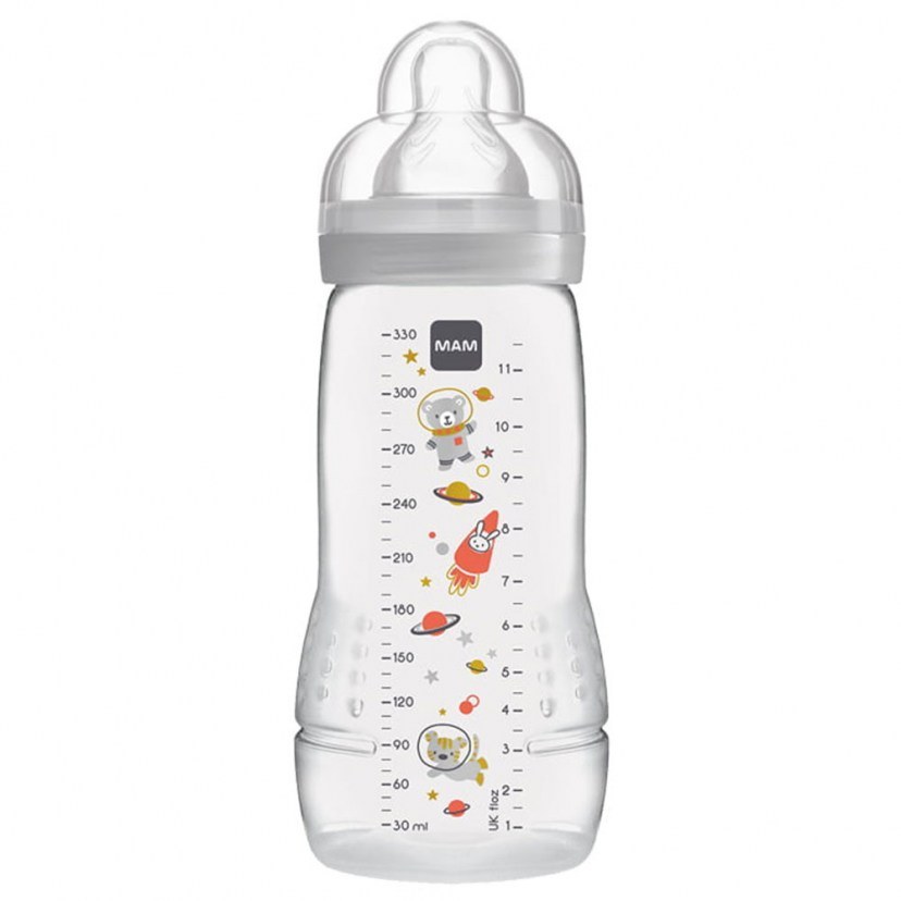 The Easy Active Space Adventure 361SU bottle is ideal for active babies, offering comfort and functionality in an active everyday life. This is a beautiful and very playful bottle, which will make your baby crazy! Made of high quality polypropylene, the bottle is durable and safe for your baby. Its ergonomic design offers easy holding for both the baby and the parents. The bottle has a large opening, offering easy filling and washing. The SkinSoft™ silicone nipple provides a sense of intimacy and softness for your baby. It is designed to mimic the natural shape of the breast and provide a comfortable feeding experience. The protective lid of the baby bottle closes securely and can also be used as a measuring cup. This allows you to accurately measure foods during preparation. It is made from materials that do not contain bisphenol A and S (BPA & BPS), in accordance with EU regulation no. 321/2011. Suitable For: 4+ Months Capacity: 330 ml