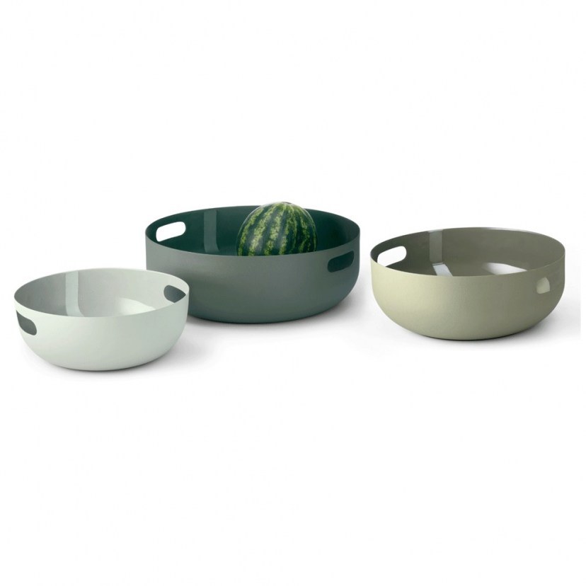 The Copenhagen 234023 Serving Bowl Set is the ideal choice to add an air of Scandinavian elegance and functionality to your kitchen or table. With a matte powder-coated exterior and glossy enamel interior, these bowls combine a minimalist design with exceptional durability, made from sturdy, food-safe steel. The three-piece set offers countless possibilities of use, such as for bread, pasta, rice, salads, fruit, nuts or even Christmas cookies. The simplicity and functionality of this set make it perfect for everyday use or for special occasions. When not in use, the bowls easily stack inside each other, offering a stylish and practical storage solution.