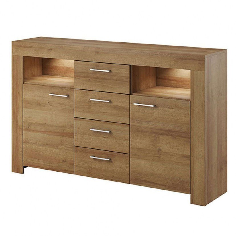 Are you looking for a modern and functional piece of furniture? You will easily and affordably find it at designdrops! The 36116-SK-21 sideboard is the best choice for those seeking elegance, quality, and excellent design. Its spacious cabinets and four drawers will quickly and easily organize your space, storing dishes, linens, clothes, or anything else you desire. Made of textured laminated particle board with protective ABS edging for greater durability over time. The product is delivered unassembled and lighting is not included in the price. Quality: Particle board & ABS. Dimensions: 1 Sideboard: W: 155cm, D: 40cm, H: 96cm.