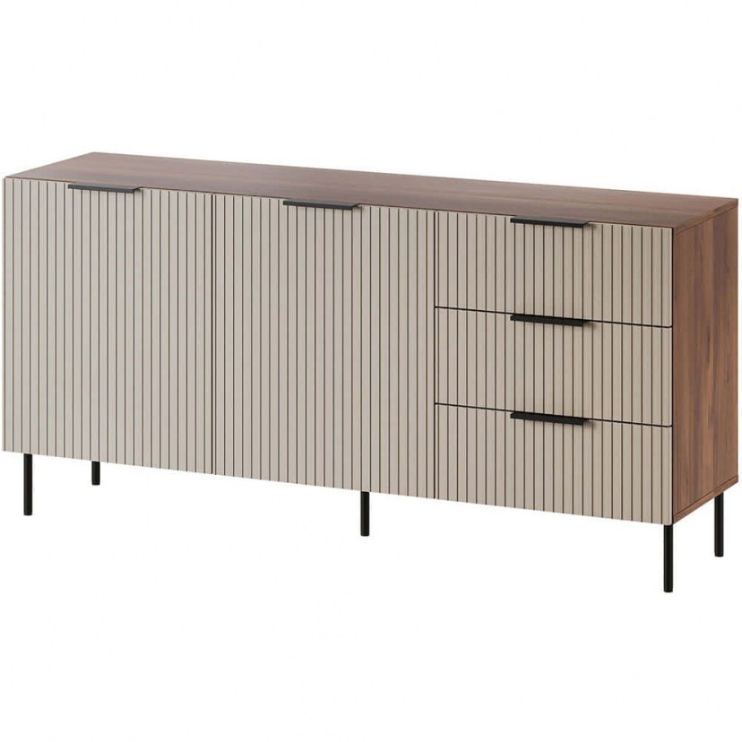 Αναβαθμίστε τον χώρο σας με τον Μπουφέ Almera I 162910579, που συνδυάζει πρωτοποριακό design και πρακτικότητα. Οι ραβδωτές προσόψεις, μία από τις κορυφαίες τάσεις στη διακόσμηση, σε συνδυασμό με τους κομψούς χρωματισμούς, προσδίδουν στυλ και φινέτσα στο σαλόνι ή την τραπεζαρία σας. Τα ευρύχωρα ντουλάπια και συρτάρια προσφέρουν άνετη οργάνωση για τα καθημερινά σας αντικείμενα, ενώ η στιβαρή κατασκευή από μοριοσανίδα και MDF, τα ατσάλινα χερούλια και πόδια, καθώς και η ευρωπαϊκή προέλευση, εγγυώνται ανθεκτικότητα και ποιότητα στον χρόνο. Το προϊόν παραδίδεται αμοντάριστο, σε εργοστασιακή συσκευασία.