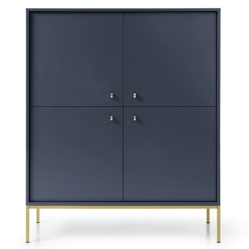The Mono sideboard is a modern and ergonomic design that offers four spacious cabinets for storage. It has a metal base with a shiny finish, which gives a bright and modern style to the space. Gold metallic knobs complement the style of the sideboard, giving it a sense of luxury and elegance. The 16mm thick melamine used for its construction is resistant to moisture and scratches, ensuring long-term durability and easy maintenance. The product is delivered unordered. Quality: