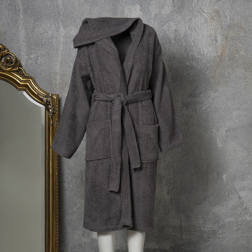 Bathrobe With Hood Liberty L Dark Grey Melinen