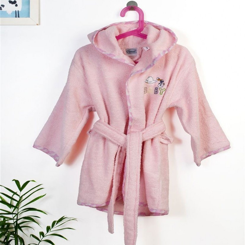 Embroidered Kids Bathrobe Stork 192 02 Pink DimCol