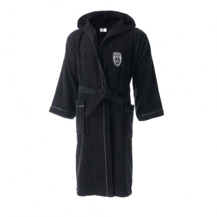 Απολαύστε άνεση και ζεστασιά μετά το μπάνιο με το Μπουρνούζι Paok Με Κουκούλα, κατασκευασμένο από 100% βαμβάκι 360gr. Ιδιαίτερα απορροφητικό και μαλακό, αγκαλιάζει απαλά το σώμα, ενώ η κουκούλα προσφέρει επιπλέον ζεστασιά και προστασία. Ιδανική επιλογή για καθημερινή φροντίδα με άνεση, ποιότητα και στυλ. Φέρει το έμβλημα του ΠΑΟΚ, γεγονός που θα σας κάνει να έχετε πάντα μαζί σας την αγαπημένη σας ομάδα!