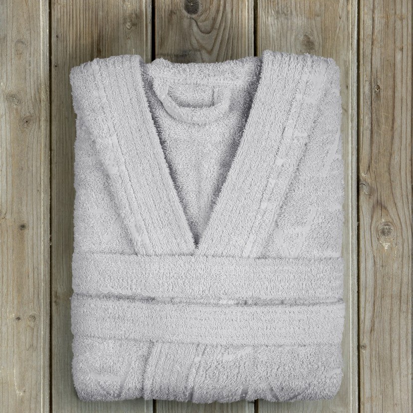 Ανακαλύψτε την απόλυτη χαλάρωση με το Μπουρνούζι Spa από 100% βαμβάκι 380 gsm με ύφανση Jacquard, που προσφέρει απαλή αίσθηση και εξαιρετική απορροφητικότητα για άνετο και γρήγορο στέγνωμα μετά το μπάνιο ή το ντους. Η ανάγλυφη Jacquard υφή του αποπνέει φινέτσα και πολυτέλεια, ενώ το χρώμα το καθιστά ιδανικό για άνδρες και γυναίκες, ταιριάζοντας με κάθε στυλ και διακόσμηση. Τα προσεγμένα τελειώματα με υφαντές γραμμικές μπορντούρες στην πατιλέτα, τη ζώνη και τις τσέπες αναδεικνύουν την υψηλή ποιότητα κατασκευής, προσφέροντας μια αίσθηση πολυτέλειας και άνεσης που θα απολαύσετε σε κάθε χρήση.